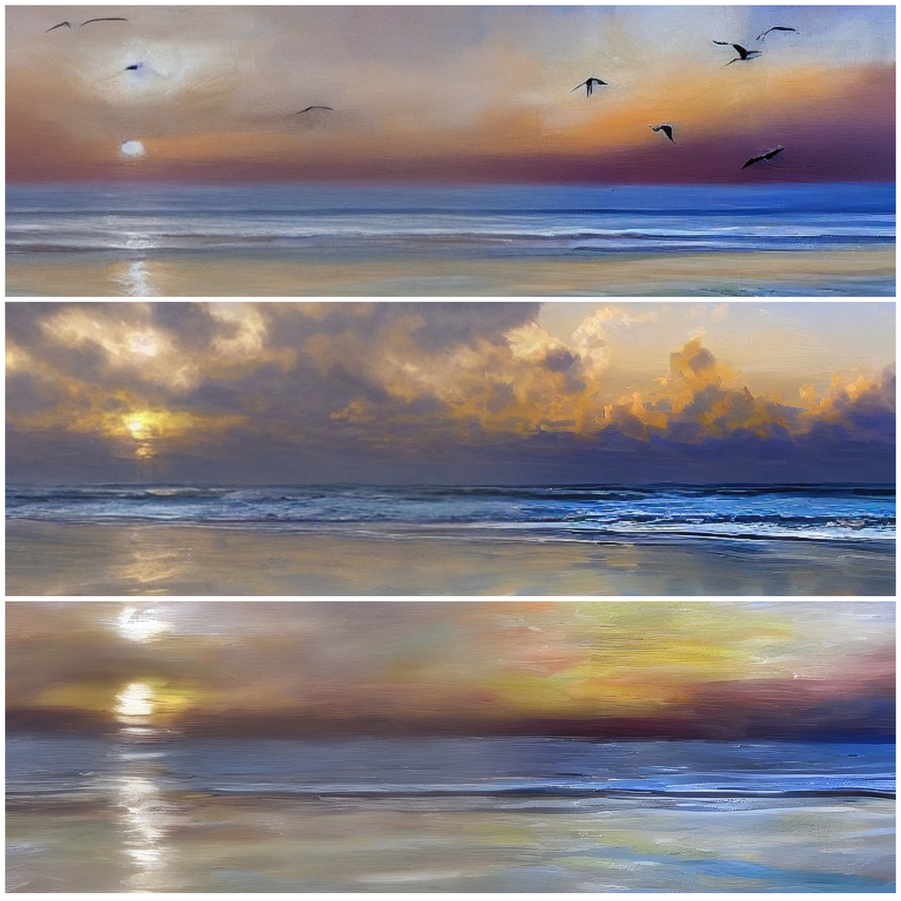 A collection of 3 landscape abstract art pieces portraying the beauty of a salty sunrise. Feel free to print them out or use them as a wallpaper!